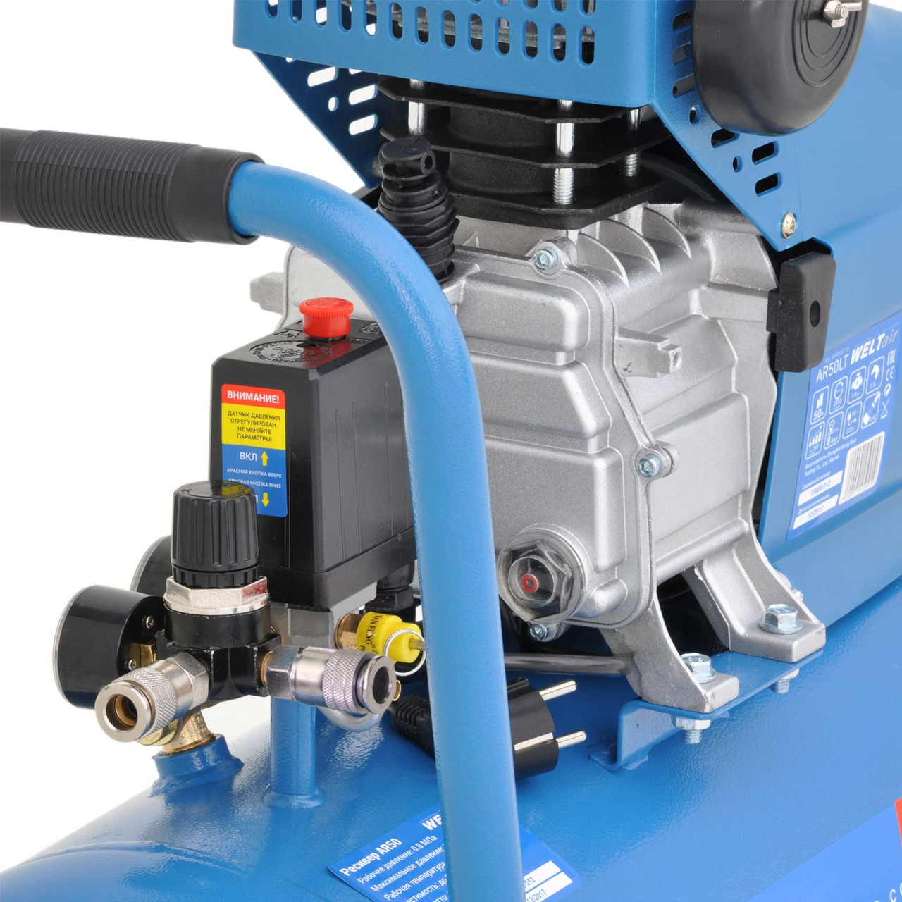 Одноцилиндровый компрессор с ресивером на 50 литров оптимален для бытового применения. Может использоваться на даче, в частной мастерской или гараже.