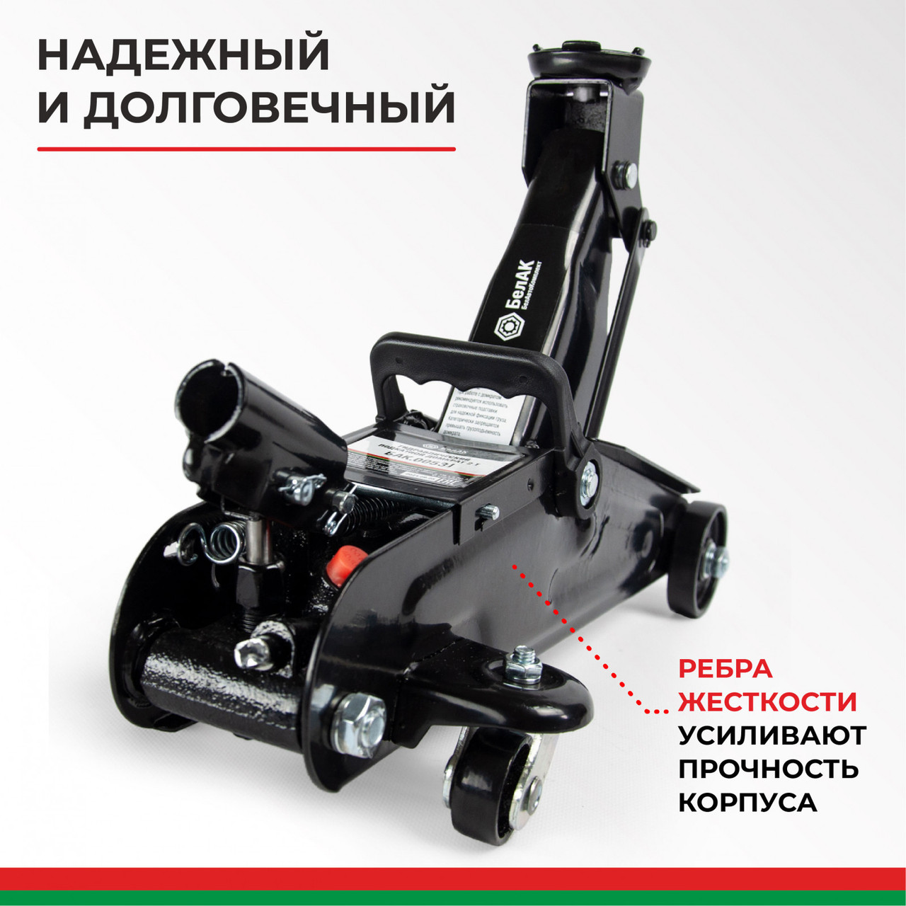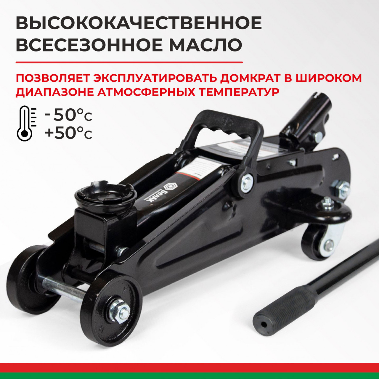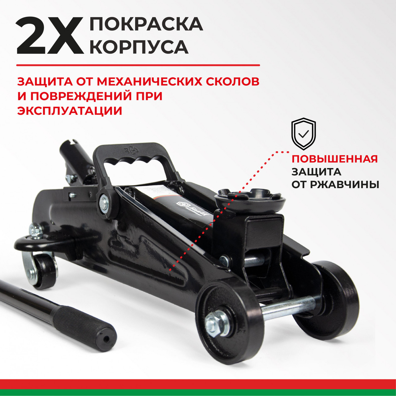 По внешнему виду гидравлический подкатной домкрат (2 т) напоминает узкую тележку, снабжённую стальными колёсами. Это приспособление имеет специальную грузовую площадку, длинную съёмную ручку/рычаг с фиксатором наклона, может оснащаться подъёмной педалью и переключателем режимов вверх/вниз. Грузовая подъёмная площадка совмещена с гидравлическим цилиндром. После нажатия на приводной рычаг начинает работать поршневой насос, повышающий давление в гидроцилиндре.